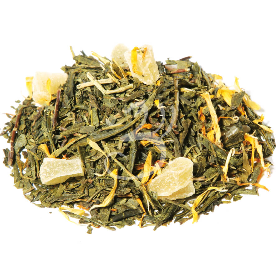 Složení: zelený čaj Čína Sencha, ananas (ananas, cukr) (12%), meloun (meloun, cukr) (7%), melounová přírodní příchuť, měsíček.