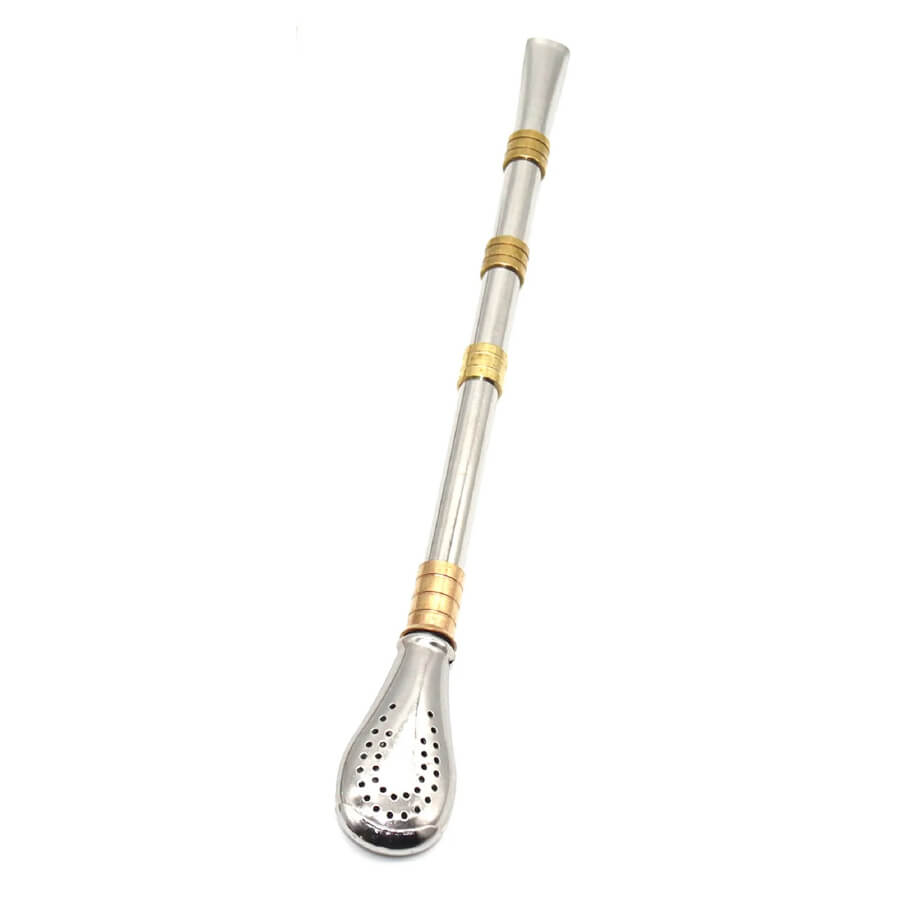 Popis výrobku: nerezová bombila. Bombila je slámka v Brazílii používaná společně s kalabasou (tykev) na pití maté. Bombila je snadno rozšoubovatelná pro lehké čištění.