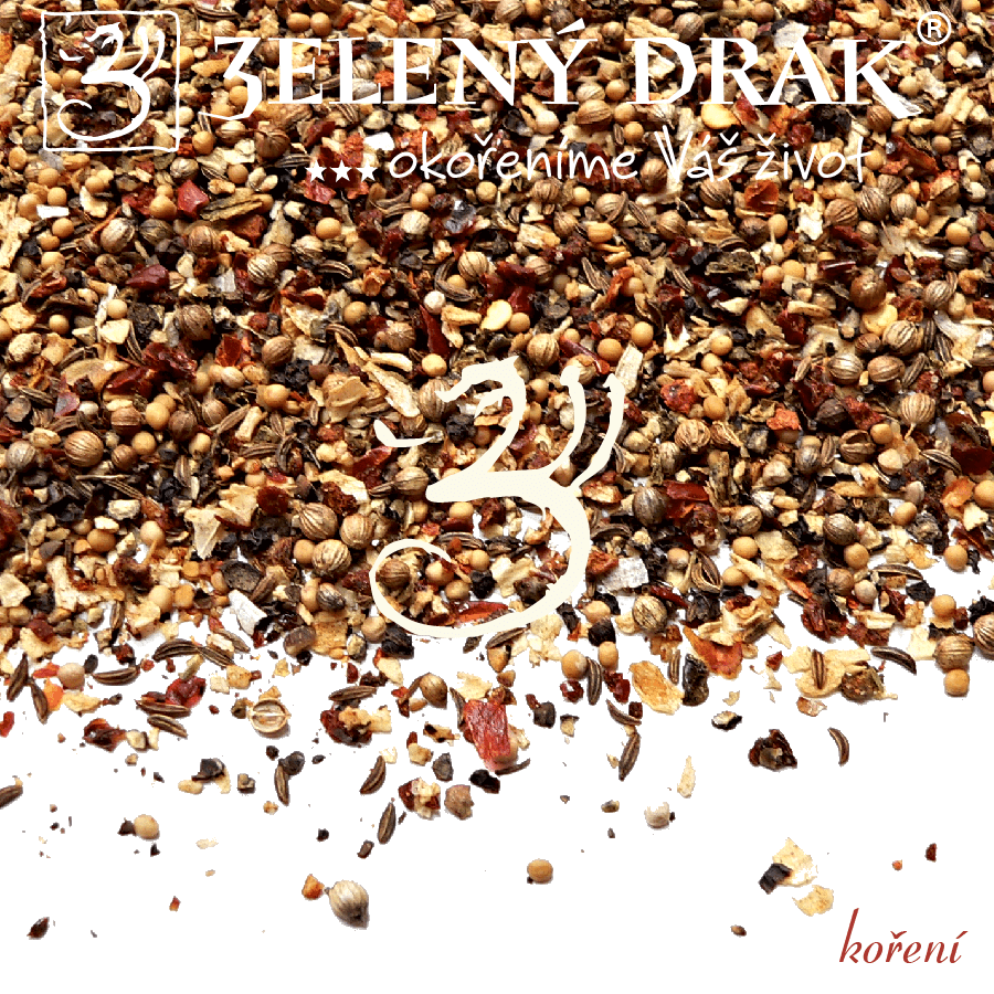 Složení výrobku: pepř černý, cibule, hořčice bílá, paprika červená, kmín, koriandr, paprika zelená, sůl 4,0 %, paprika sladká, chilli. Obsahuje alergen: hořčice bílá