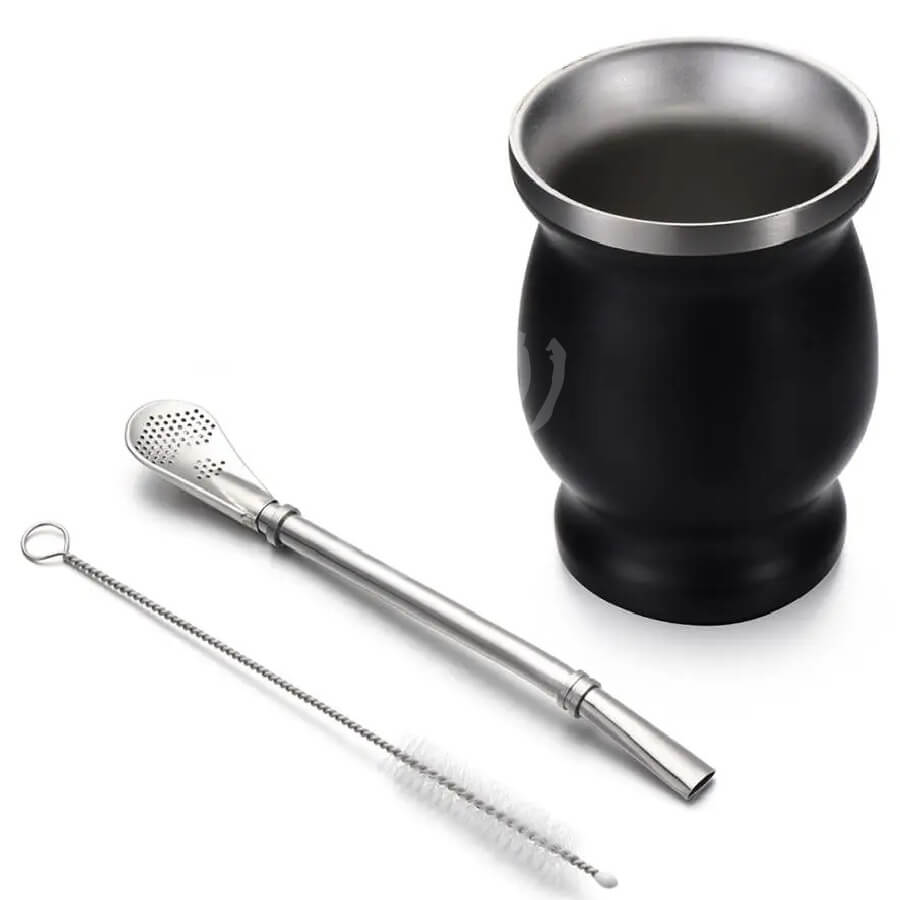 Popis výrobku: kalabasa z nerezové oceli s dvojitou stěnou + bombila a čisticí kartáček. Objem cca 0,22l. Dále se můžeme setkat též s názvem kalabassa, kalebassa apod. což je tykev v Brazíli běžně používaná na pití maté.