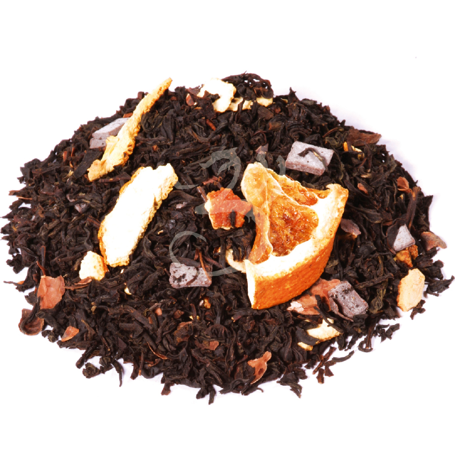 Složení čaje: černý čaj Ceylon, -Jižní Indie, -Čína, pomerančová kůra (12%), kakaovník slupky, aroma, pomerančové kousky (3%), ČOKOLÁDA (CUKR, KAKAOVÁ HMOTA, KAKAOVÉ MÁSLO,EMULGÁTOR: SOJOVÝ LECITIN (E 322)) (3%).